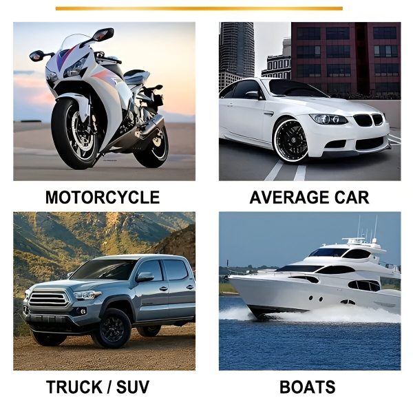 Koristite CARCOAT na automobilima, čamcima, motociklima, kamperima, terenskim vozilima i još mnogo toga. Bezbedan je za sve površine, uključujući boju, plastiku i staklo.